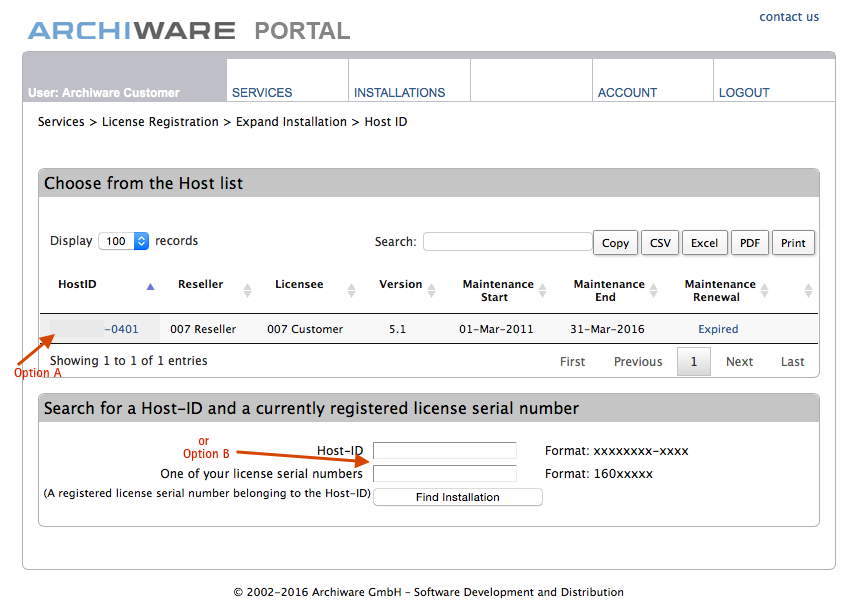 インストールを拡張する対象となる元のライセンスを特定します。特定の方法には次の2つの方法があります。