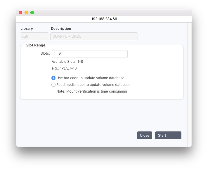 これは、インベントリを実行するライブラリのメディアの範囲など、最初と最後のスロットを定義します。