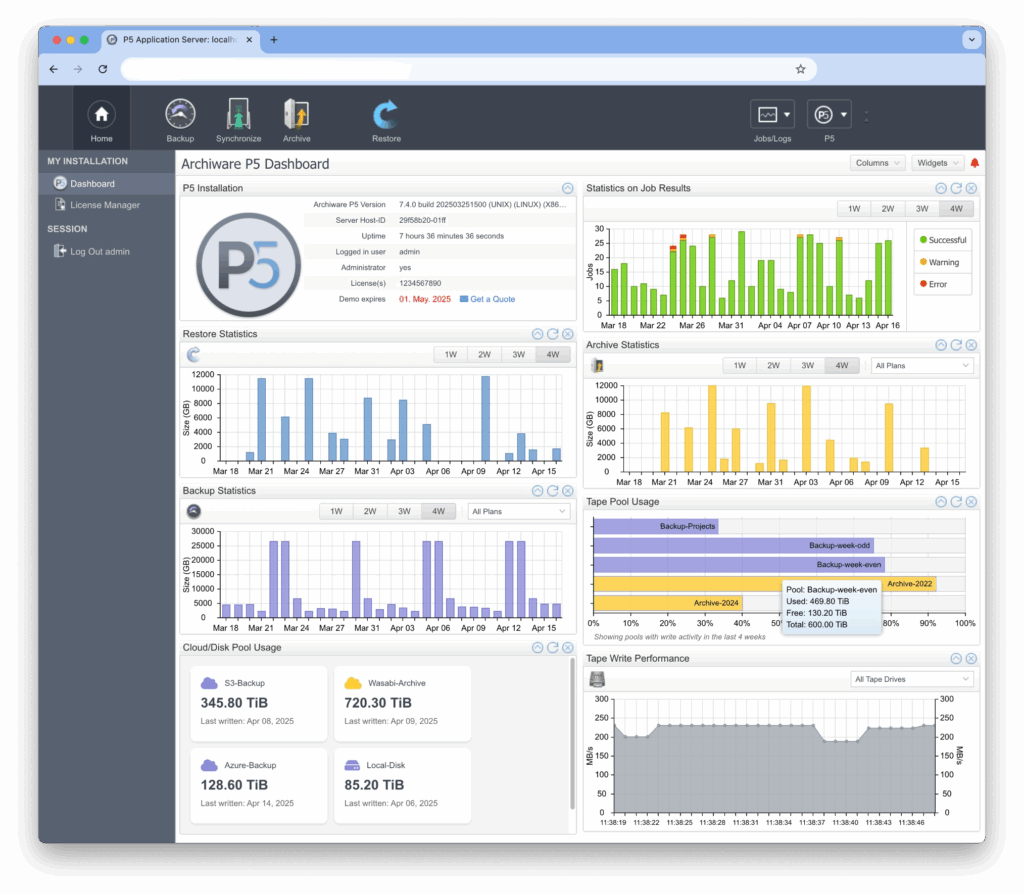 P5が実行する各ジョブ(バックアップやアーカイブジョブなど)の実行後には、実行のプロトコルが保存されます。このプロトコルには、ジョブの実行と完了に関連するすべての情報、特にメディアの損傷などの例外的な状況が記録されています。