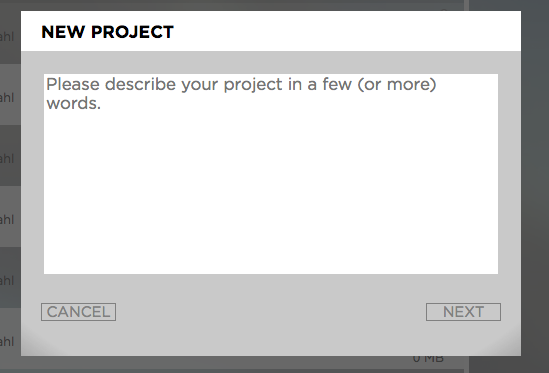 - 新しいプロジェクトに説明を追加します。プロジェクトが作成されると、「description (説明)」が検索可能になります。「NEXT(次へ)」をクリックします。