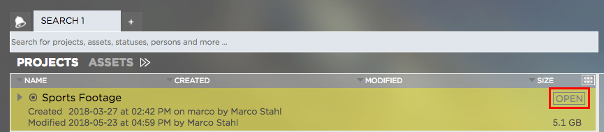開くプロジェクトを選択し、[OPEN (開く)]ボタンをクリックします。プロジェクトの検索方法については、