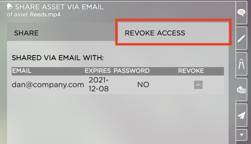 4.-ユーザー名の横にあるボタンをクリックして、ユーザーからそのアセットへのアクセスを取り消します。ユーザーはアセットにアクセスできなくなります。