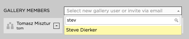 5. ユーザーを見つけるか、電子メール アドレスを入力したら、名前または電子メール アドレスをクリックして、この人をギャラリーに招待します。