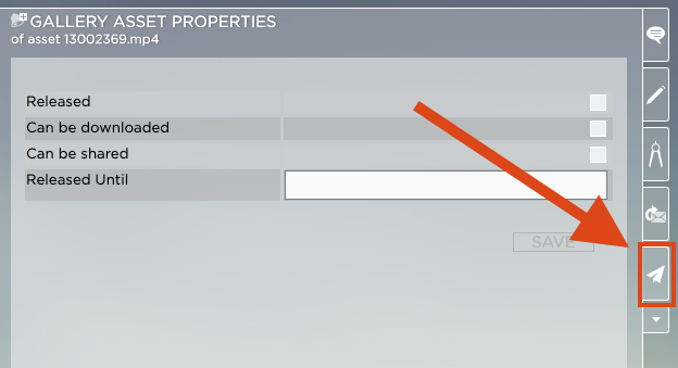 3. 「リリース済み」の横のボックスにチェックを入れます。この画面から、(Eメール リンク経由で) アセットをダウンロード可能および再共有可能に設定することもできます。リリース期間を特定の日付に制限することもできます。リリース プロパティの詳細については、このマニュアルの関連セクションを参照してください。