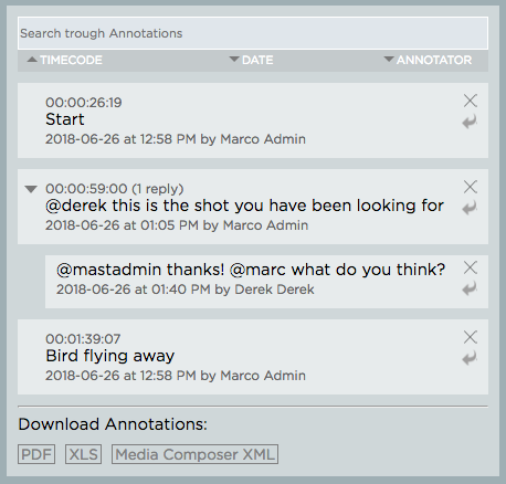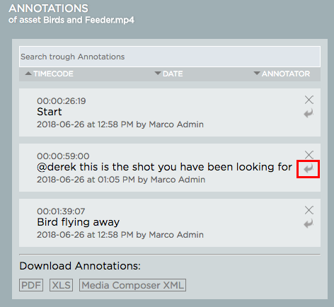 アノテーションに返信する