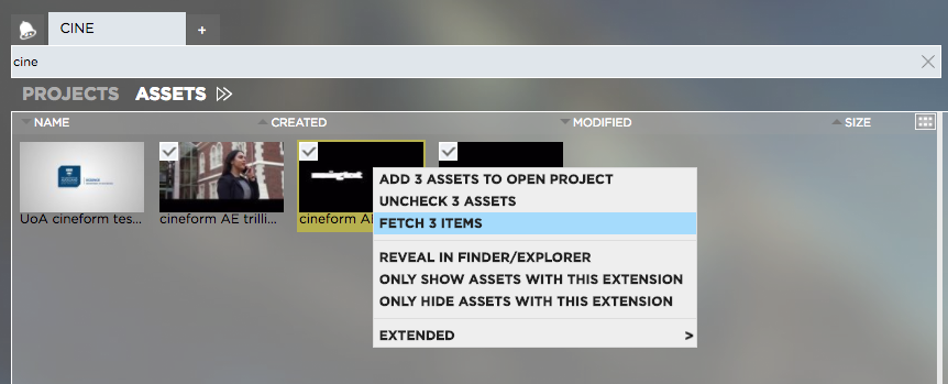 2. 選択したアセットを右クリックし、コンテキスト メニューから「Fetch x Items (xアイテムを取得)」を選択します。