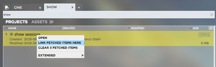 4. プロジェクトを右クリックし、コンテキスト メニューから「Link Fetched Items Here (取得したアイテムをここにリンク)」を選択します。