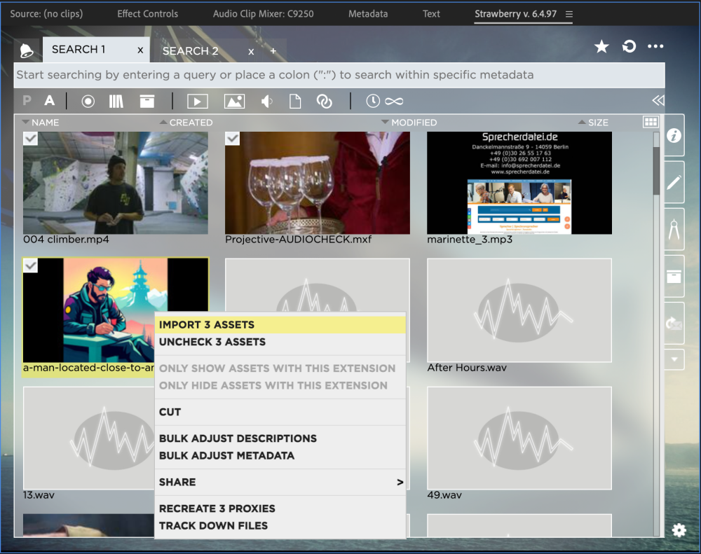 3. 選択したアセットの 1 つを右クリックし、「Import x assets」を選択します。 xは選択したアセットの数を表します。