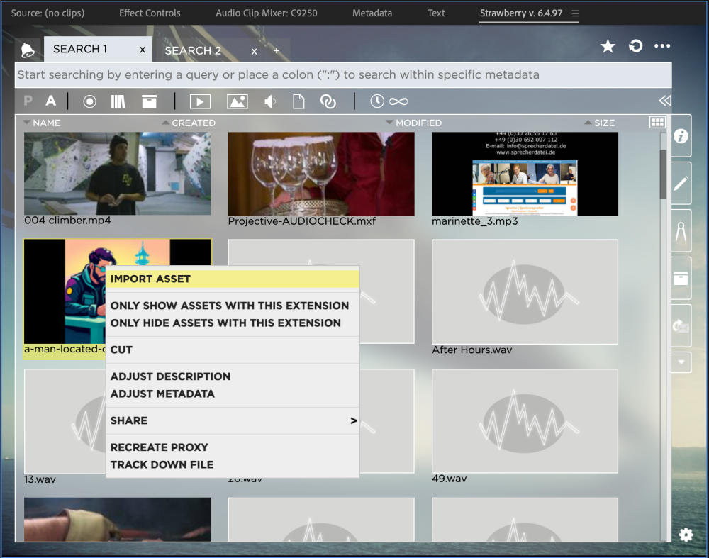 4. HighRes マスター クリップが選択したビンにインポートされます。インポート時にビンが選択されていない場合は、「Linked-Files」ビンにインポートされます。