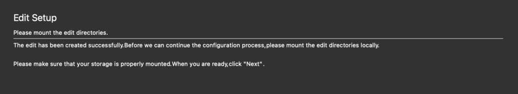 7. Next >をクリックして続行します。 「共有編集マウント構成」というページが表示されます。