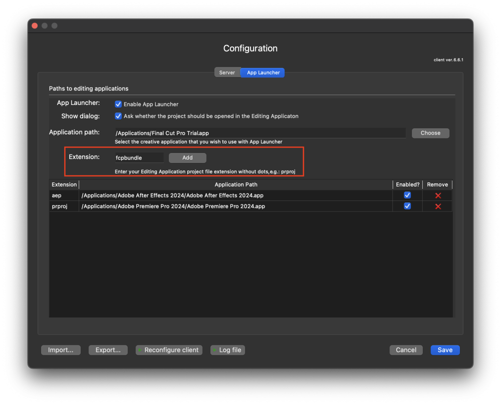 7. プロジェクトのファイル拡張子を入力したら、「追加」ボタンをクリックします。