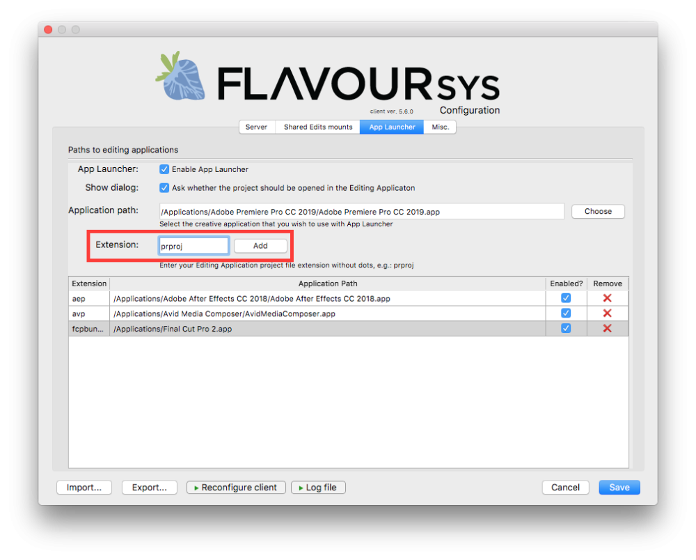 6. 次に、下の「拡張子」フィールドに移動し、以前に選択したアプリケーションのプロジェクト ファイル拡張子を入力します。このフィールドではドットを使用しないでください。