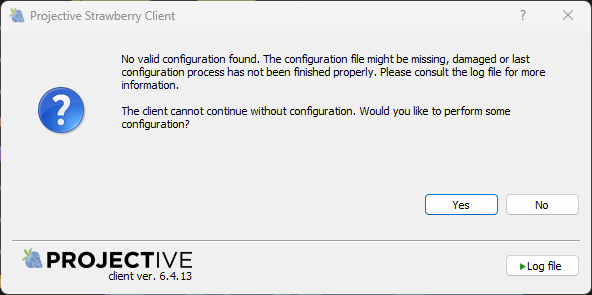 1. Strawberry クライアントを初めて起動すると、「No valid configuration found (有効な構成が見つかりません)」というメッセージが表示されます。