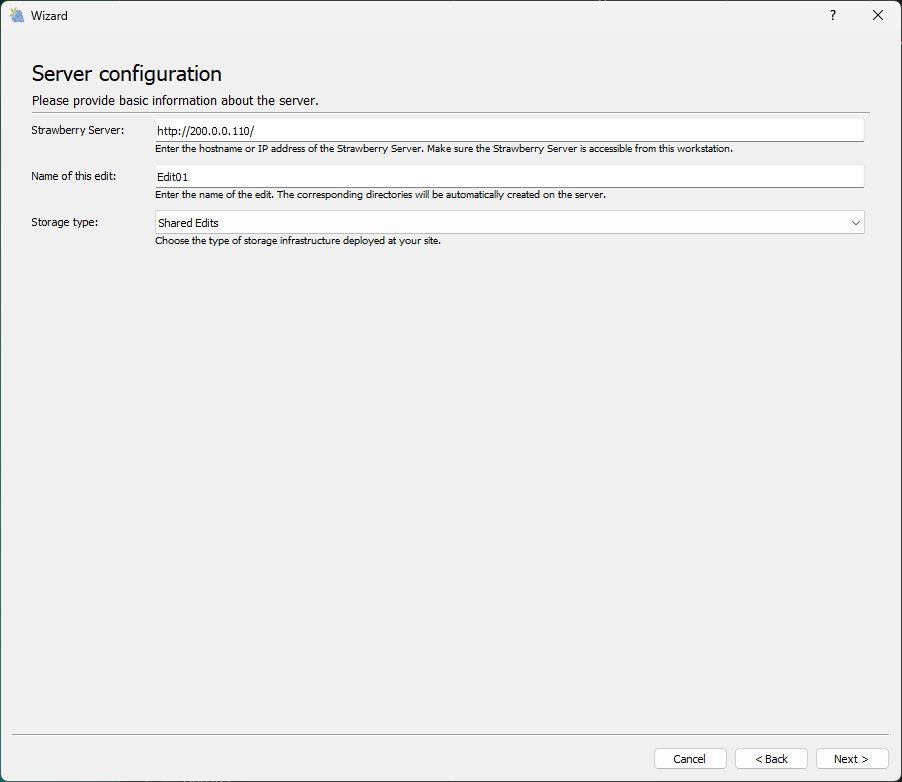 • Use storage name as prefix for open projects (開いているプロジェクトのプレフィックスとしてストレージ名を使用する) : Strawberry サーバーが複数の物理ストレージ ボリュームを管理している場合にのみ、このボックスをオンにします。それ以外の場合は、ボックスのチェックを外したままにしてください。
