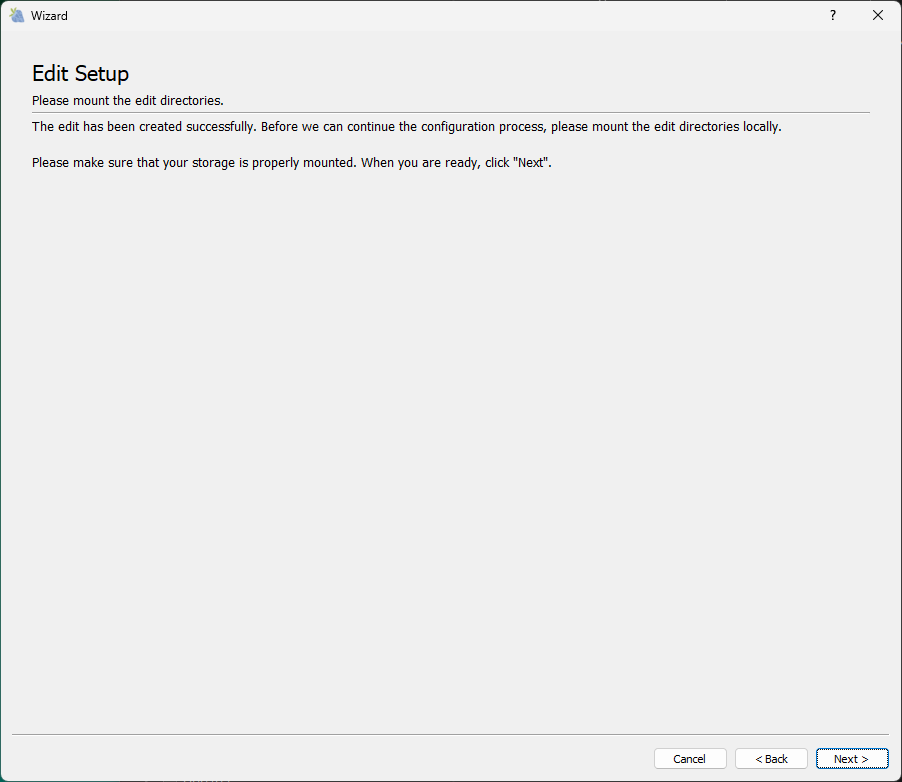 7. Next >をクリックして続行します。 「共有編集マウント構成」というページが表示されます。