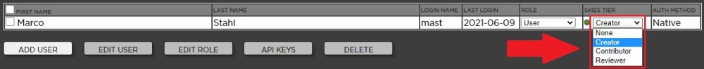 4.右側の列に移動し、SKIESSKIES TIERドロップダウン メニューから目的の Skies Tierを選択します。選択と同時に変更が反映されます。