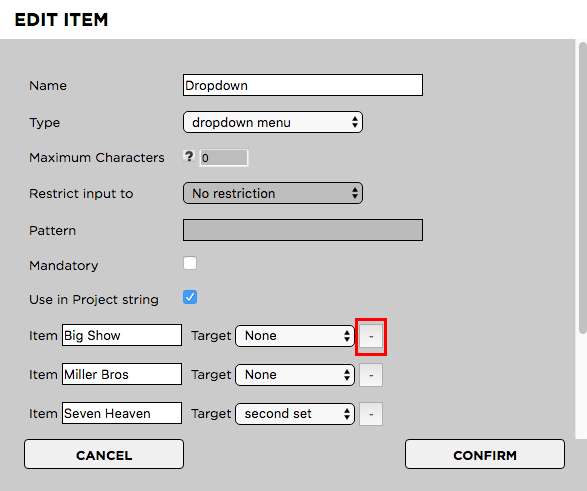 !ドロップダウン値 (エントリ) を削除すると、現在その値を使用しているすべてのプロジェクトからもその値が削除されます。削除する前に、下記の代替方法を検討してください。