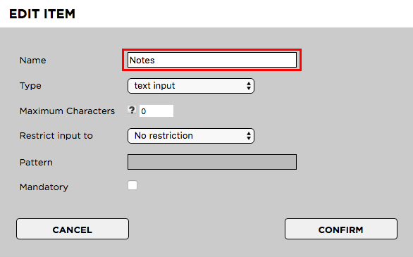 テキスト入力フィールドの名前を変更すると、そのフィールドを使用しているすべてのプロジェクトからそのエントリを削除せずに、その名前を変更できます。