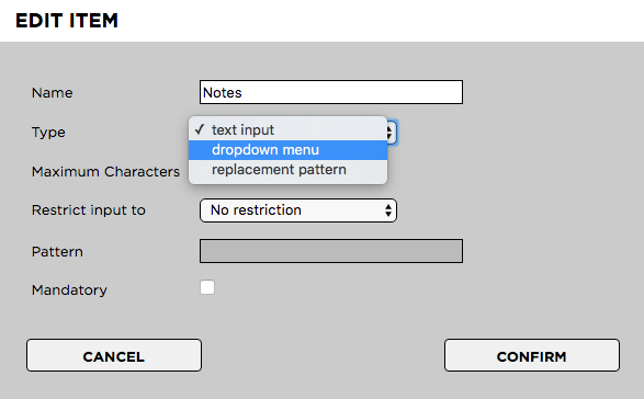 特定のドロップダウン メニューが必要なくなった場合は、テキスト フィールドに変換できます。これにより、既に使用しているアセットのドロップダウンの (以前の) エントリが保存され、ユーザーが新しいフリー テキスト エントリを入力できるようになります。