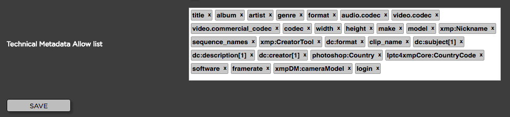 Technical Metadata Allow List(テクニカルメタデータ許可リスト)