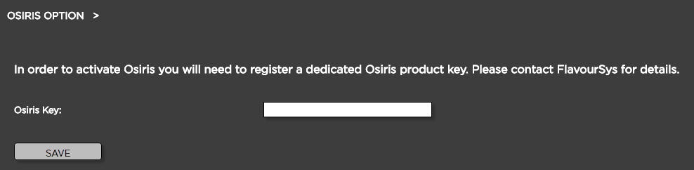 4. Osiris ライセンス キーを入力し、「SAVE (保存)」ボタンをクリックします。