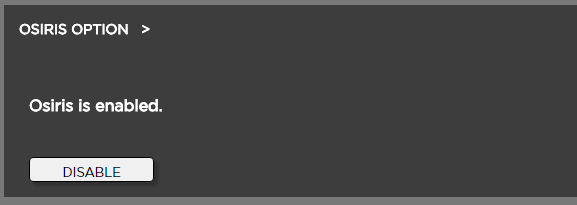 5. 有効にすると、バーに「Osiris is enabled. (Osiris が有効です)」と表示されます。