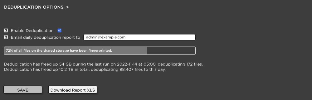 Assetsタブをクリックします。Deduplication Optionsアコーディオンをクリックします。