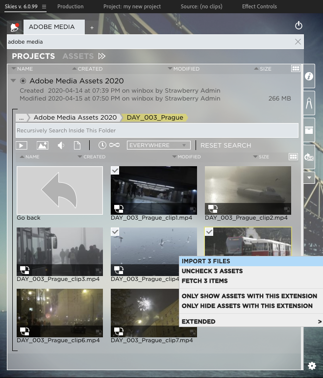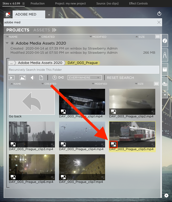 - ファイルがダウンロードされると、すぐにアクティブなAdobe Premiereプロジェクトにインポートされます。