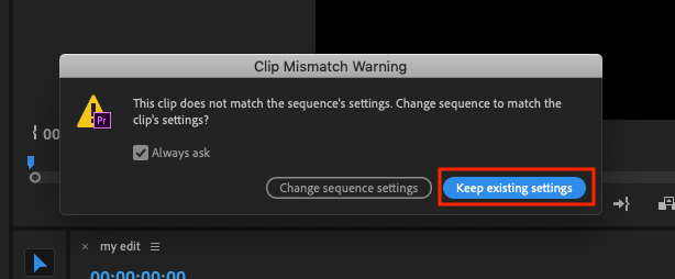 - 編集する会社の通常の制作デフォルトに合わせてシーケンス設定を調整してください。不明な場合は、管理者に問い合わせるか、プリセットシーケンスを含むテンプレートプロジェクトファイルをリクエストしてください。