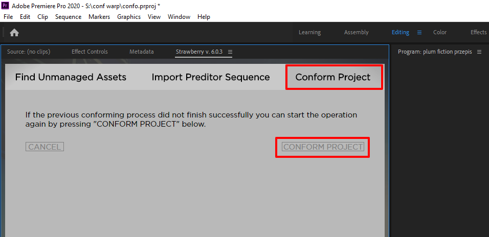 5. 「Conform Project (プロジェクトをコンフォーム)」タブをクリックし、「Conform Project (プロジェクトをコンフォーム)」ボタンを押します。