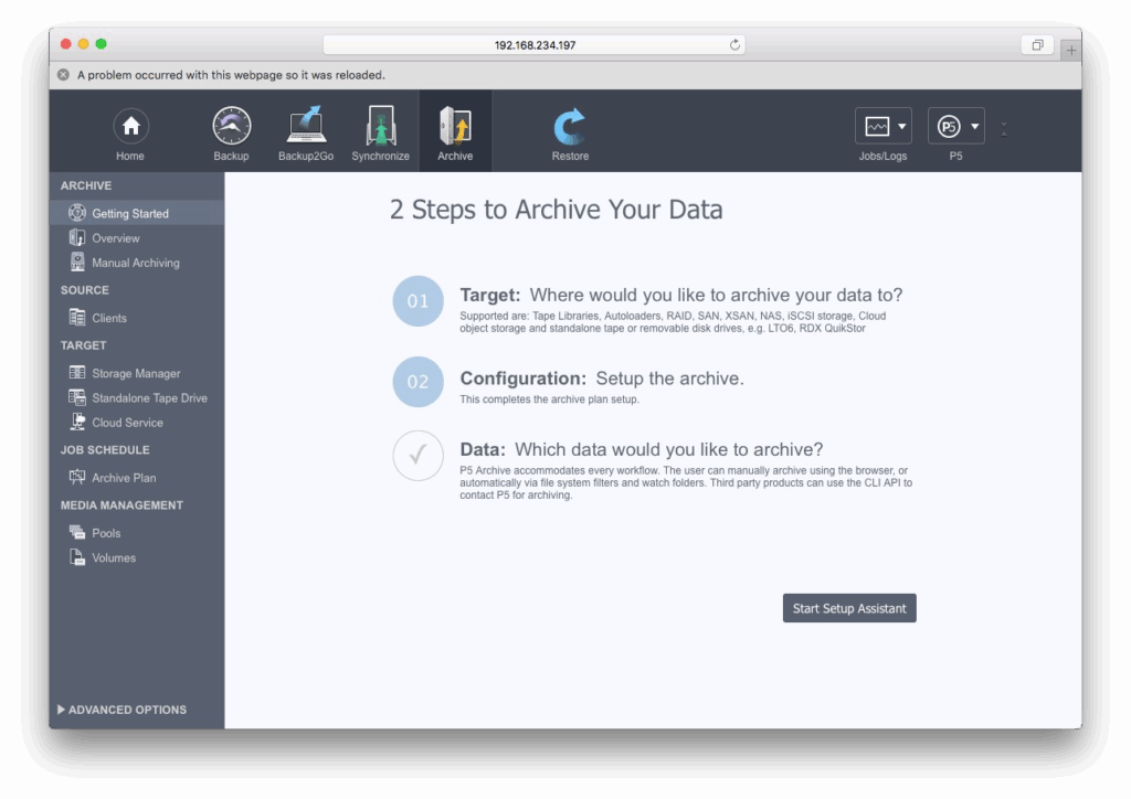 アシスタントの手順に従って、データをアーカイブする場所と方法を定義するだけです。