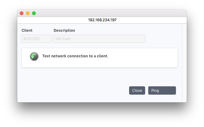 Ping をクリックするとテストが開始されます。結果は ping ウィンドウの下部に表示されます。クライアントのバージョンがサーバーと互換性があるかどうかがチェックされます。