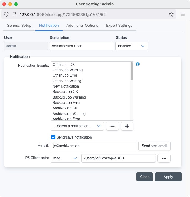 通知は、P5 で選択されたイベントのいずれかが発生したときに電子メールを送信します。通知は、イベントに一致する設定を持つ各ユーザーに送信されます。以前のバージョンとは異なり、異なる通知を異なるユーザーに個別に送信できます。