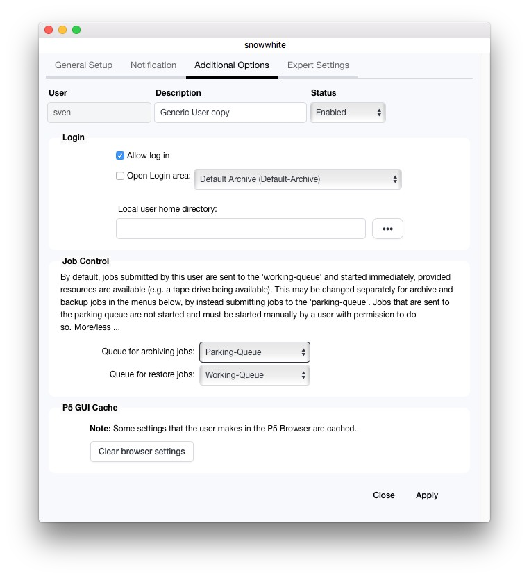 ここで、P5 サーバー ホスト上のユーザーのホーム ディレクトリを設定します。このフォルダーは、手動でファイルをアーカイブする場合など、ファイル システムを参照するときにホーム フォルダーとして追加され、表示されます。
