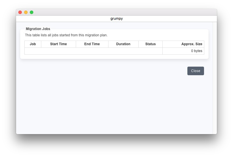 マイグレーションジョブログでは、その移行計画に基づいたジョブと、移行されたデータの量が表示されます。