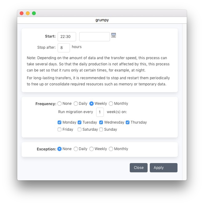 マイグレーションスケジュールは、移行がいつ実行されるか、そしてどれくらいの期間実行されるべきかを定義します。