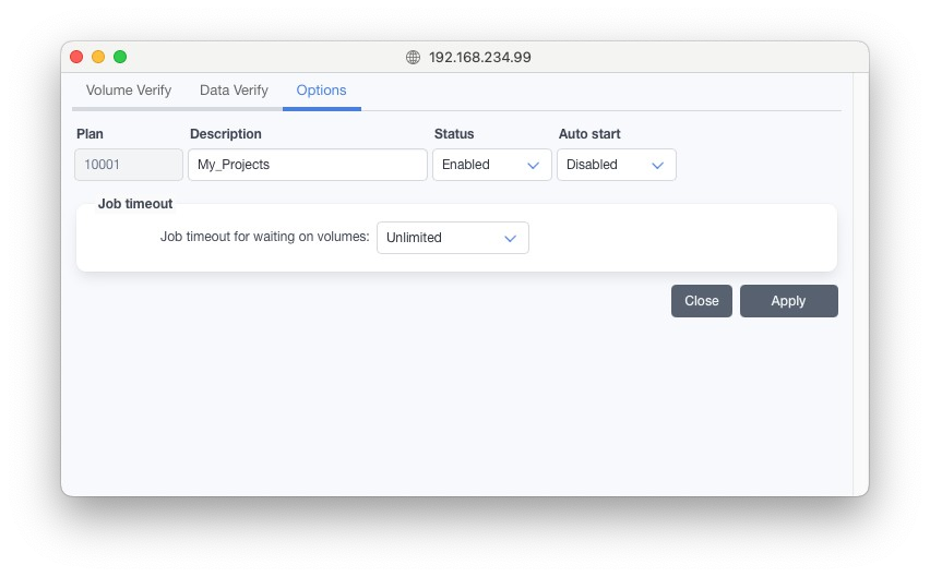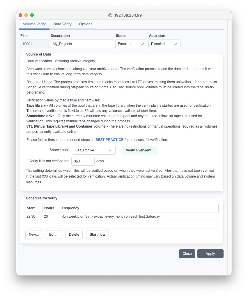 検証プランを設定すると、一定期間内に検証されていないオンラインのテープを自動的に検証することが可能です。検証中にはテープが読み取られ、データのチェックサムが保存された値と比較されます。