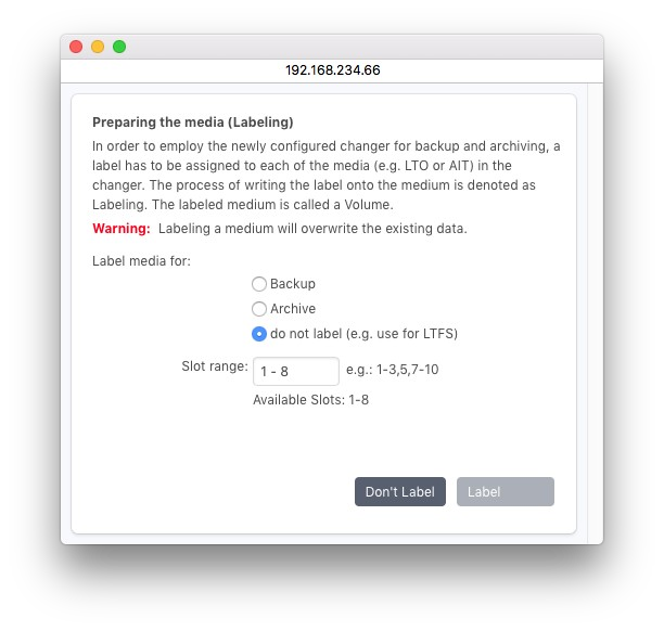 ジュークボックスのセットアップに続いて、ウィザードではテープへのラベル付けが可能になります。