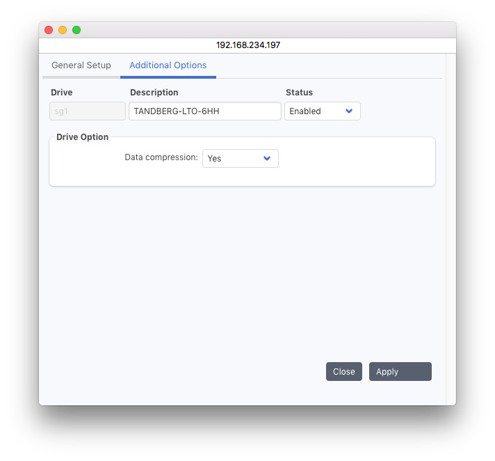 このセクションでは、LTO テープ ドライブなどのスタンドアロン テープ ドライブの構成について説明します。テープ ドライブには通常、直接アクセスできません。P5 がテープ ドライブを使用するには、その前に構成する必要があります。P5 がデータの書き込みに使用できる 1 つ以上のデバイスを構成できます。各デバイスには、ドライブのプロパティを表す複数の属性があります。チェンジャー内のドライブもデバイスとして表されます。このような各デバイスは、チェンジャーを構成するときに自動的に生成され、手動で構成することはできません。