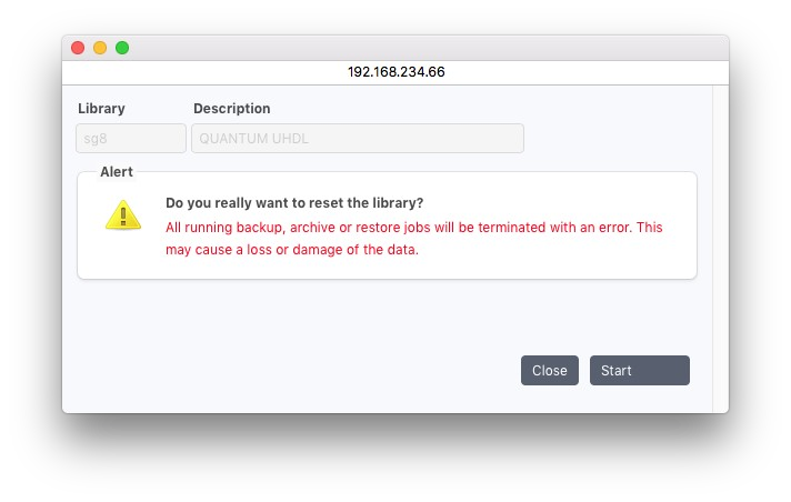 ライブラリをリセットする前に、このライブラリまたはそのドライブを使用しているジョブがないことを確認してください。これらのジョブはリセットによって中断され、データが失われる可能性があります。