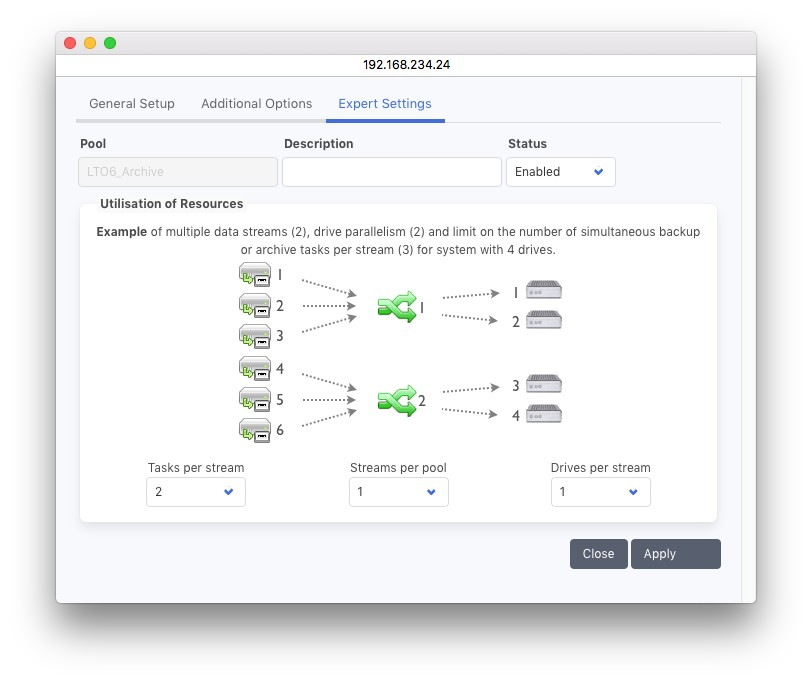 プールのさらなる利点は、制御およびチャネリング機能です。プールでドライブを定義して選択したドライブのみを使用したり、対応するプールのメディアを特定のスロットに割り当てて使用スロットを制限したりできます。