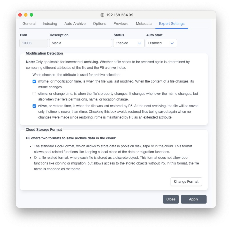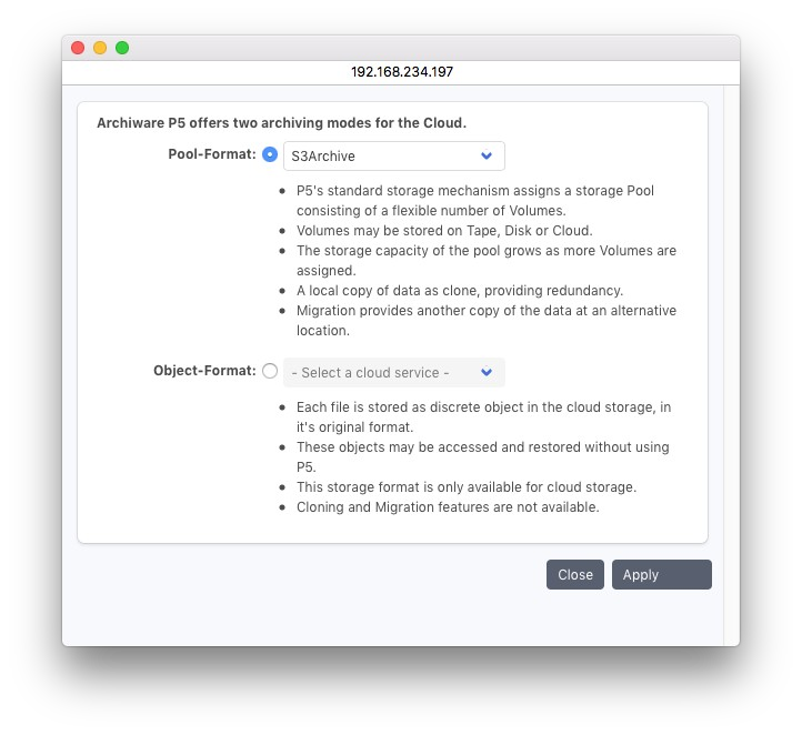 P5は、クラウドにアーカイブデータを保存するために2つの形式を提供しています: