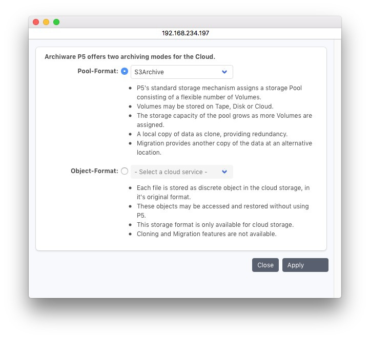 P5 では、クラウドにアーカイブ データを保存するための 2 つの形式が提供されています。