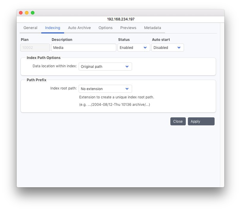 このプランでアーカイブされたすべてのデータがインデックスに保持される単一のパスが定義されます。ユーザーは、アーカイブ時にこのパスを変更したり、代替パスを選択したりすることはできません。