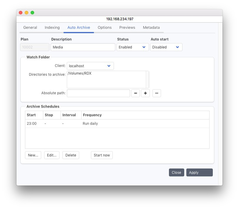 プレビューはアーカイブ中に自動的に生成されます。プレビューはアーカイブ インデックスとともにディスクに保存されるため、解像度によってはかなりのスペースが必要になる場合があることに注意してください。