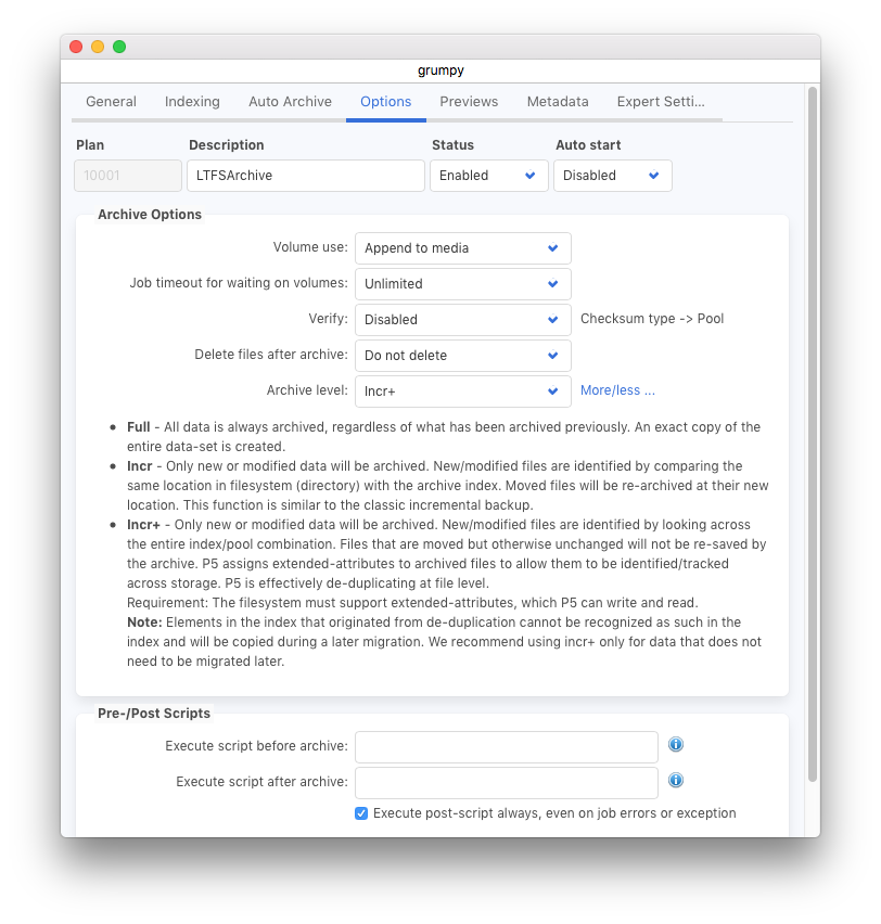 Incr+ が期待どおりに動作するには、データが存在するファイル システムが拡張属性をサポートしている必要があります。増分アーカイブを実行する場合、P5 はファイルをパスで比較します。