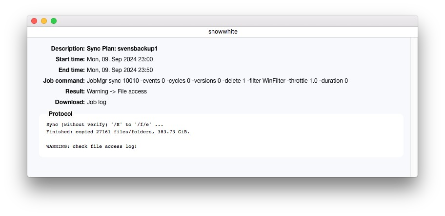 ジョブヒストリーまたはジョブ モニターで完了したジョブをダブルクリックすると、ジョブの詳細ウィンドウが表示されます。