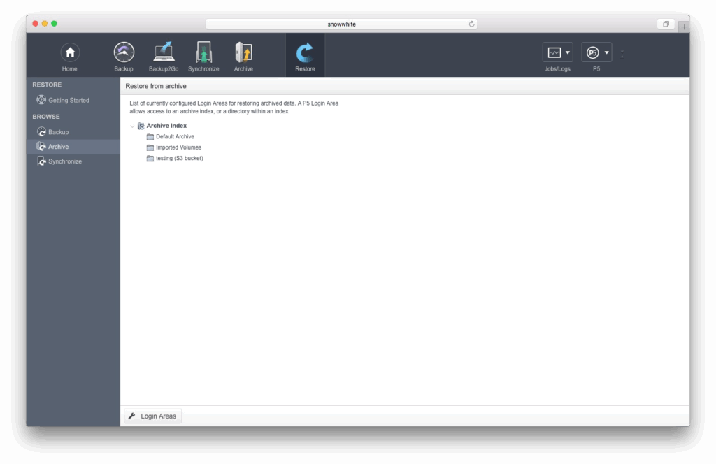 アーカイブ ジョブを実行するたびに、新しいスナップショットが作成されます。デフォルトでは、P5 は常に、古いファイルすべてを含む、リストア元の最新のスナップショットを表示します。