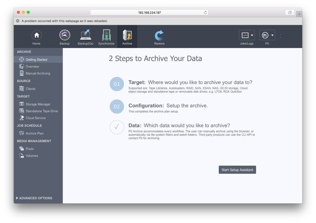 アシスタントの手順に従って、データをアーカイブする場所と方法を定義するだけです。