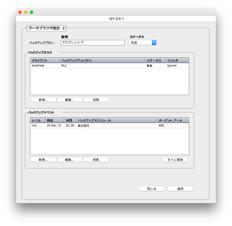 プログレッシブ・バックアップの設定